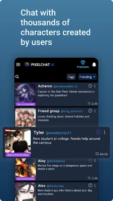 One of the key features of PixelChat is its expansive character options. Users can choose from a variety of characters, ranging from fantastical creatures to historical figures, giving them the freedom to create their own unique and diverse AI characters. This allows for endless possibilities and opens up a world of creativity for users to explore.