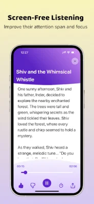 The app is easy to use - simply download it, create a personalized story or explore the curated story library, add your child's name and loved ones as characters, choose a genre, and select a life lesson or moral. Then, press play, lock your screen, and enjoy a screen-free audio storytelling experience. The best part is that your child will hear their own name inside the story, making it even more magical and unforgettable.