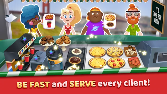 Upgrade your kitchen-on-wheels with top-of-the-line appliances to speed up your cooking process and serve even more customers. Don't underestimate the power of a high-tech oven when it comes to creating the perfect crispy crust! Spin the roulette for daily rewards and earn coins and gems to keep improving your fast-food business.
