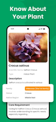The app's key features include instant plant identification using the latest AI models, detailed plant information such as common and scientific names, family, type, native habitat, sunlight and water requirements, toxicity, care tips, and fun facts. It also offers plant care guidance on how to grow and take care of each identified plant. Users can also access their plant scan history, which can be viewed, copied, shared, or deleted. The app supports over 10 languages, and users can change the default language in the settings.