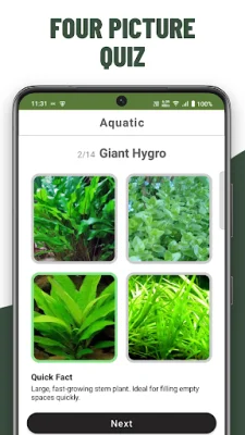 Dive deep into the world of plants with the app's extensive plant categories, including aquatic, carnivorous, epiphytes, ferns, flowering, non-flowering, and more. Each category features stunning plant images and carefully curated quiz questions to help you learn and identify different species.