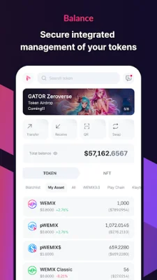 The app may request access to certain features such as the camera, storage, and phone. These permissions are optional and can be disabled at the user's discretion. The camera access is useful for scanning QR codes and coupons, while storage and phone access may be required for logging in to WeChat. However, the WEMIX wallet itself does not use these features separately.