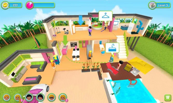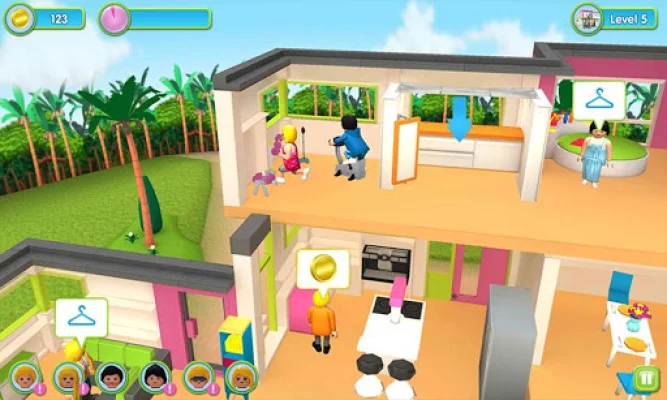 The PLAYMOBIL app offers a fun and interactive experience for residents and their guests. With a variety of activities to choose from, such as exercising, showering, changing outfits, making coffee, and reading by the pool, there is something for everyone to enjoy. The app also helps users keep track of their needs and guides them to their desired destination. As users complete tasks, they earn coins that can be used to purchase new furniture and item upgrades for their virtual home.