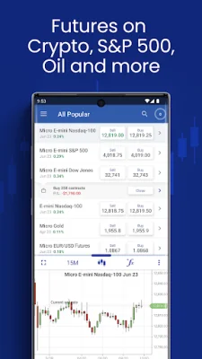 Plus500 is a trading app that offers advanced features for both experienced professionals and beginners in Futures trading. With Plus500, you can trade Futures and take advantage of their powerful and reliable trading technology. Plus500 also provides 24/7 professional support and has no platform or market data fees. They offer low margins and trading commissions, making it easy for anyone to start trading and diversify their portfolio with e-Mini and micro Futures Contracts.