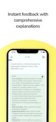 What sets this app apart from others is its focus on providing more than just practice questions. Each question is accompanied by in-depth explanations written by certified PMI-ACP instructors, helping users connect theory to practical Agile practices used in various environments such as Scrum, Kanban, Lean, XP, and hybrid. Additionally, the app offers a full-length timed simulation to give users an accurate assessment of their readiness for the PMI-ACP exam.