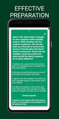 This application provides a comprehensive test simulator for the PMI-ACP certification exam. It includes 50 questions in the free trial version and 240 questions in the full access version, all with detailed answers. This allows users to practice and prepare for the exam in a realistic and efficient manner.