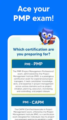 Our mobile app, Pass On Your First Attempt, is designed to help individuals prepare for and pass the Project Management Professional (PMP) and Certified Associate in Project Management (CAPM) certification exams. The app creates a personalized study plan based on the user's skill level, study frequency, and target test date. Users can also adjust their study plan as needed, making it flexible and adaptable to their schedule.