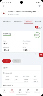 This application is designed to provide users with a comprehensive overview of their investment portfolio. It offers a consolidated view of all investments, making it easier for users to track their assets and make informed decisions. The app also provides access to various features such as a dashboard, holdings, performance, and other reports, all of which are just a few clicks away.