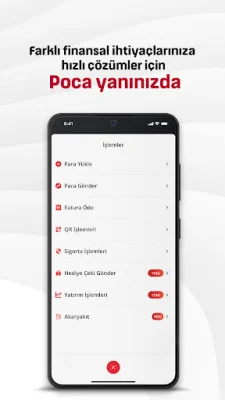 Poca, finansal ihtiyaçlarınızı hızlı bir şekilde karşılamayı amaçlayan bir uygulamadır. Ücretsiz bir Poca hesabı oluşturarak birkaç adımda kullanmaya başlayabilirsiniz. Bu hesap sayesinde para transferi, sigorta işlemleri, fatura ödemeleri gibi birçok işlemi gerçekleştirebilir ve QR işlemleri, ön ödemeli kart seçenekleri gibi özelliklerden yararlanabilirsiniz. Ayrıca bu işlemleri yaparken nakit iade kampanyalarından ve ödüllerden de faydalanabilirsiniz.