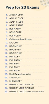 Pocket Prep is an application that helps individuals prepare for certification exams. It can be used at home or on the go, making it convenient for busy professionals. The app has been trusted by thousands of people since 2011 and offers expert-written questions that are aligned with official exam blueprints. This ensures that users are studying the most relevant and up-to-date content. With Pocket Prep, users can feel confident and prepared for their exam day. The app offers over 22,000 practice questions with detailed explanations and textbook references. It also has mock exams that simulate the test day experience, helping to build confidence and readiness. There are also a variety of study modes, such as Quick 10, Level Up, and Weakest Subject, allowing users to tailor their study sessions to their needs. The app also offers performance analytics, allowing users to track their progress, identify weak areas, and compare their scores with their peers. Pocket Prep covers 21 professional certification exams, including APICS, ASQ, BCSP, EIC, HRCI, PMI, SHRM, and USGBC. This includes a wide range of practice questions for each exam, with some exams having over 2,000 questions available. Users can try Pocket Prep for free, with access to 30-80 practice questions across 3 study modes. For full access to all 21 exams and advanced study modes, users can upgrade to the Premium version. This includes features like Build Your Own Quiz, Missed Question Quiz, and Level Up, as well as full-length mock exams and a Pass Guarantee. The app offers different subscription plans to fit the goals of its users, including a 1-month, 3-month, and 12-month option. Pocket Prep has been trusted by thousands of professionals, with many users crediting the app for helping them pass their exams. It has been described as a gamechanger and a sole reason for passing exams. Overall, Pocket Prep is a comprehensive and convenient tool for anyone looking to prepare for a certification exam.