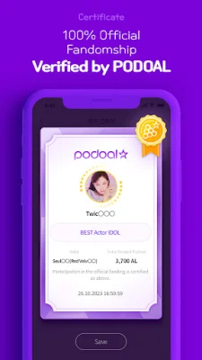 But the fun doesn't stop there! The app also features a "Fanding Certificate" where fans can show off their fandom power certified by PODOAL. This allows you to see who voted the most and compete with other fans for the top spot in the "Hall of Fame." And speaking of the "Hall of Fame," fans can also support their best idol to be featured on this prestigious list.