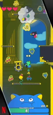 Bounce up, dodge adorable baddies and feed the blue beast that's hot on your heels. This is a vertical climber game created by the award-winning developer of Downwell. The goal of the game is to keep climbing higher and higher while avoiding obstacles and collecting fruit to feed the blue beast chasing you. The game features intuitive one-handed controls, making it easy to play on the go.