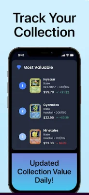 The app also offers real-time portfolio valuation, using live marketplace prices to give users an up-to-date understanding of their collection's value. Users can also monitor the growth of their collection over time with value history charts. The app supports both raw and graded cards from popular trading card games, including the Pokémon Trading Card Game.