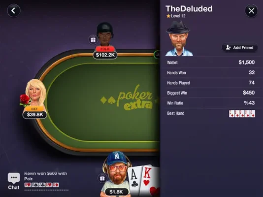 One of the best features of Poker Extra is the ability to challenge your friends and other poker players. You can invite your friends to play with you and make it a fun poker night anytime. This adds a social aspect to the game, making it more enjoyable and competitive.