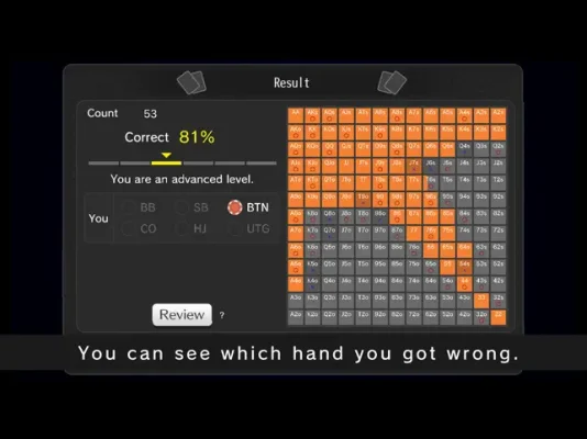 The application also offers a feature that allows users to track their progress and identify areas for improvement. Users can see which hands they made mistakes in after learning and can also view detailed information about specific hands by displaying the power number table. This feature helps users to analyze their gameplay and make necessary adjustments to improve their skills.