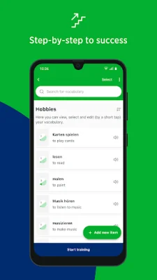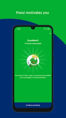 The PONS Vocabulary Trainer is an application designed to help users learn and improve their vocabulary in over 25 different languages. The training is divided into three phases: memorizing, practicing, and testing. This allows for a comprehensive and effective learning experience. The app offers various exercises to make learning fun and engaging, and users will receive feedback and tips from Ponsi, the motivated frog, to help them along the way.