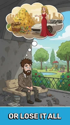 💎 POOR TO RICH is a mobile application that allows players to experience the journey of going from a homeless person to the richest man in the kingdom. The game involves keeping track of your health, money, and happiness indicators and trying to live to 100 years old. The ultimate goal is to lead a homeless man to a king's life by tapping the screen, collecting coins, and leveling up your hero.