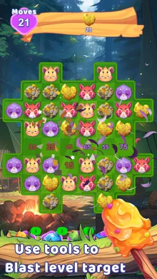 To add more excitement to your gameplay, Pop Forest offers masterful boosters that will breathe life into your matches. Lure animals with irresistible honey sticks, trigger dynamite for explosive chain reactions, and unveil combinations that will leave you in awe.