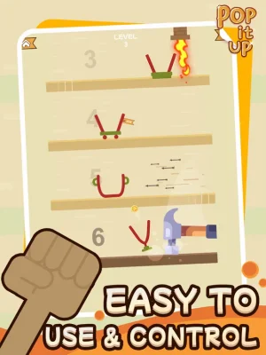 Welcome to Pop it up, a thrilling gold coin jumping game that will put your skills to the test. With simple controls, you can challenge yourself to reach new heights and push your limits. The objective of the game is to use a hammer to control the bouncing of cups and help the gold coins inside jump continuously, while avoiding obstacles and reaching higher platforms. Each level presents new challenges that require precise timing and control to successfully pass and earn double gold coin rewards.