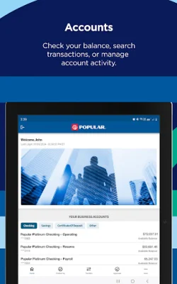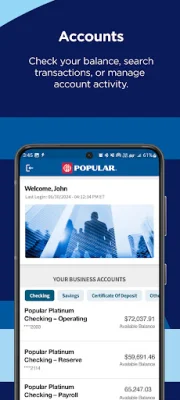 In addition, the app allows for easy transfer of funds between Popular Bank accounts. This gives users greater flexibility and access to their funds, making it easier to manage their finances. Whether it's transferring money between business accounts or to personal accounts, this feature makes it quick and convenient.