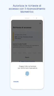 ACCESSO CON IMPRONTA DIGITALE Puoi autorizzare rapidamente gli accessi tramite impronta digitale come alternativa al codice PosteID.