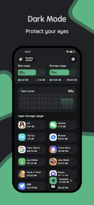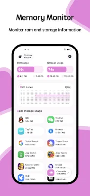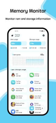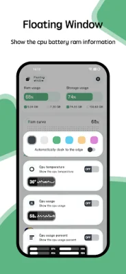 The application also includes a Floating Window feature that displays real-time information about the CPU temperature, battery temperature, and RAM usage. This feature is available in two forms: a status bar floating window and a desktop floating window. This allows users to easily monitor their device's temperature without having to open the application.