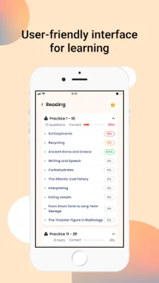 One of the key features of the TOEFL® Test Pro app is its extensive question bank, which includes over 3000 gamification questions. These questions are categorized into a level-up progress system, allowing users to sharpen their skills and track their progress. Additionally, the app offers over 400 flashcards to help users quickly and effectively learn TOEFL vocabulary.