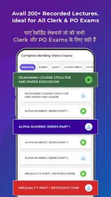 The app covers a wide range of exams, including banking, regulatory, SSC, engineering, and MBA exams. For banking exams, it offers various courses such as section-wise video courses, complete banking video course, and PDF courses. It also provides a free mock test for all banking exams, along with detailed exam analysis and AIR. Similarly, for regulatory exams, the app offers free mock tests and study material for exams like SEBI Grade A, RBI Grade B, and NABARD Grade A.