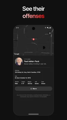 With Predator, you can also view detailed offender profiles, including their name, location, background details, and offenses. This information can help you make informed decisions about your safety and the safety of your loved ones.