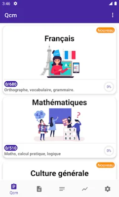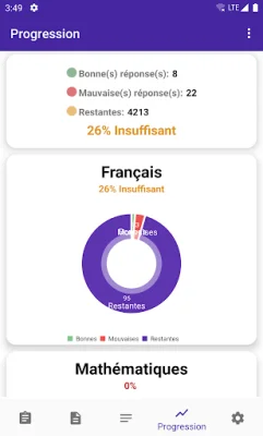 A la fin de chaque série d'exercices, vous obtenez un pourcentage de vos réponses, vous permettant ainsi de mesurer vos progrès et de vous motiver à vous dépasser. L'application vous permet également de suivre l'évolution de vos résultats, vous aidant à identifier vos points forts et vos points faibles pour mieux cibler vos révisions.
