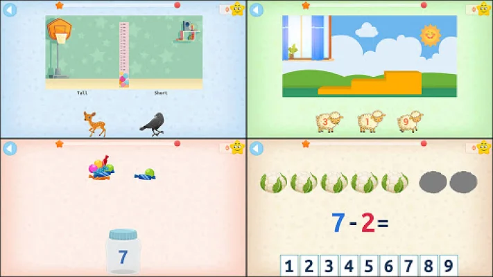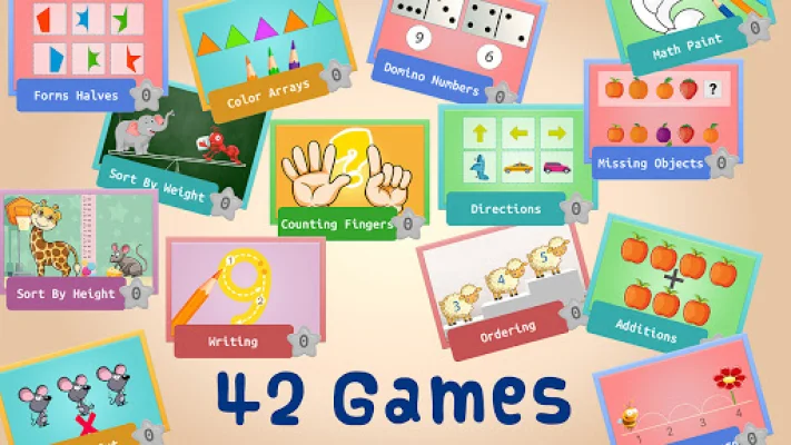 The app contains 42 fundamental math activities, including counting, sorting by size and form, writing numbers, addition, and subtraction. These activities are designed to help children develop a strong understanding of math concepts and skills that will benefit them in primary school.
