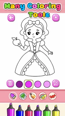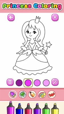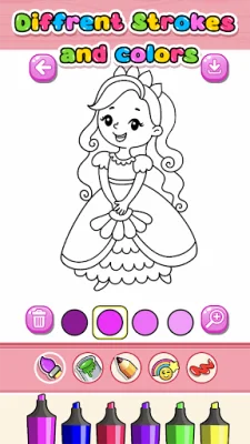 The app offers a wide collection of princess-themed coloring pages for users to explore. From beautiful gowns to sparkling tiaras and magical castles, there are endless possibilities to create your very own fairytale masterpiece. With various brushes, crayons, and color palettes to choose from, users can let their creativity run wild and create unique and beautiful artwork.