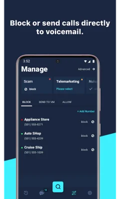 PrivacyStar also gives users the ability to block calls by category, such as telemarketers, account services, and even ex-partners. Users can also choose to prevent callers from leaving voicemails or send them straight to voicemail. The app also provides notifications for blocked calls, voicemails, and new voicemails. Users can also report abusive callers directly from the app, with reports being sent to the FTC.