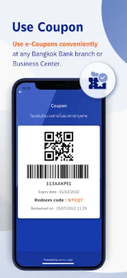 Using the e-Coupon feature, you can conveniently use your coupons at any Bangkok Bank branch or Business Center. This eliminates the need to carry physical coupons with you, making it a more eco-friendly and hassle-free option. You can simply show the e-Coupon on your app and enjoy the benefits and discounts at the designated locations.
