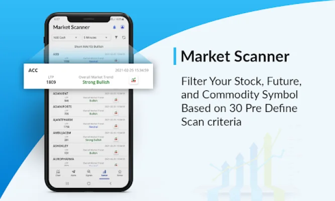 Our Pro Signals app offers a variety of key features, including accurate signals, NSE and MCX scanner, and personalized alerts. With our robust market scanner, you can filter stocks, futures, and commodities based on 30 pre-defined criteria, making it easier to find trending opportunities that align with your trading strategy. Our app also provides stock market charts for both intraday and positional trading in NSE and MCX, keeping you ahead of the game with real-time updates.