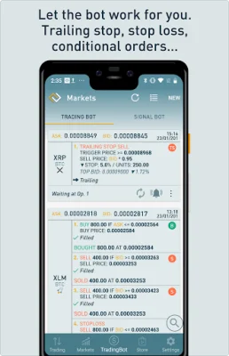 Our app also offers trading bots that allow you to configure conditional orders for specific markets, coins, and buying and selling prices. You can even set an optional stop loss to control adverse market conditions. And now, you can configure the trading bots to auto-restart when trades are finished. Plus, you can receive push notifications when your trading bot orders are filled. For more information on how to use our trading bots, you can check out our tutorial.