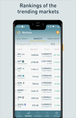 Our app also offers smart enhanced charts with price and volume history, allowing you to customize the time range. This is a must-have tool for trading, and you can even track real-time charts for BTC. You can also manage your hodl signals and track your benefits, coin buying price, amount traded, coin last value, signal date, and price increment. You can even add signals directly from your orders history. And if you want to see which markets are trending with the most benefits in the last 24 hours, you can easily sort them by increment, price, or name. Plus, you can manage up to 100 different KuCoin accounts.
