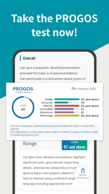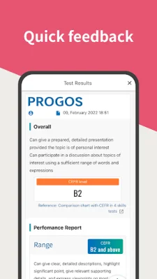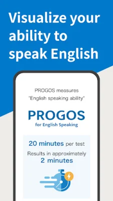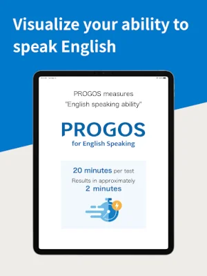 PROGOS is an app designed to help you improve your English speaking skills. It offers a fast and efficient way to assess your current level and identify areas for improvement. In just 20 minutes, you can receive a CEFR-compliant evaluation of your skills, making it easy to understand where you stand and how to progress. After completing the test, you will receive detailed feedback on your performance. This allows you to focus on specific aspects of your speaking skills that need enhancement. Whether you're a beginner or an advanced learner, PROGOS is designed to meet the needs of learners at all proficiency levels. The app offers a variety of key features to make your learning experience smooth and effective. The 20-minute speaking test is concise and fits into your busy schedule. The evaluation is CEFR-compliant, ensuring your skills are measured against a globally recognized standard. The feedback is powered by AI, providing precise and actionable insights. And the user-friendly interface makes navigation easy and enjoyable. Using PROGOS is simple. Just download the app and take the 20-minute speaking test. You will then receive detailed feedback on your performance, highlighting your strengths and areas for improvement. By regularly taking the test, you can track your progress over time and adjust your learning strategy accordingly. PROGOS is trusted by learners worldwide and uses next-generation technology to provide reliable and precise results. The team behind PROGOS is committed to excellence and dedicated to helping you achieve your language learning goals. The app is constantly being improved to ensure the best possible experience for users. Don't wait any longer to improve your English speaking skills. Download PROGOS now and take the next step towards mastering the language. With its fast and efficient assessments, detailed feedback, and commitment to excellence, PROGOS is the perfect tool to help you succeed.