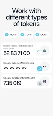 The app is highly versatile and compatible with a wide range of websites and applications as it supports all OATH one-time password generation algorithms, including HOTP, TOTP, and OCRA. It also includes a data signature function called "Confirm What You See," which allows users to verify and control their financial transactions more effectively.
