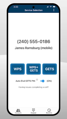 The app also includes a log of recent calls made within the app, as well as a list of frequently called numbers. This makes it easier for users to access and call important numbers quickly during an emergency. Additionally, the app offers a convenient test call functionality for both WPS and GETS, ensuring that the services are working properly and ready to be used when needed.