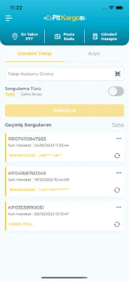 Kargo Modülü, tekli veya çoklu gönderilerin takibini yapmayı sağlar. Barkod tarama özelliği sayesinde, gönderilerin takibini daha hızlı ve kolay bir şekilde gerçekleştirebilirsiniz. Ayrıca, gönderileri arşive ekleyerek de takip işlemini yapabilirsiniz. PTT şubesine gitmeden, yurt içi ve yurt dışı bireysel ön kabul ve sipariş işlemlerini gerçekleştirebilirsiniz. Herhangi bir PTT noktasına gitmeden, yurt içi veya yurt dışı gönderilerinizin tahmini teslim ücretini ve süresini hesaplayabilirsiniz.
