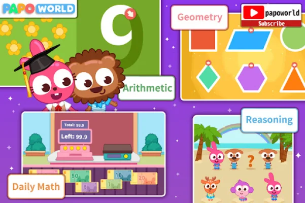 This app is designed for young learners and offers a variety of fun and educational activities. It covers basic math skills such as counting, addition, subtraction, and shapes, as well as more advanced concepts like telling time, directions, and currency. Through mini games and practices, children can enhance their mathematical thinking, logical skills, and daily use of these concepts.