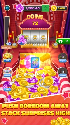 The game is simple to play – just tap to drop coins and watch the magic unfold. Push tokens, prizes, and power-ups off the edge, but be careful not to let anything fall off the sides. Stay sharp, aim smart, and keep the coins flowing to increase your chances of winning.