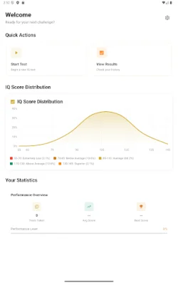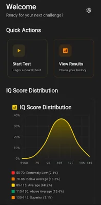 With PuzzIQ, you get a professional IQ assessment with real-time scoring and interactive charts that show your performance distribution. You can also track your progress over time with historical test results and detailed analytics. The application uses a scientifically calibrated scoring system to provide accurate IQ measurements and breakdowns of your cognitive strengths and areas for improvement.