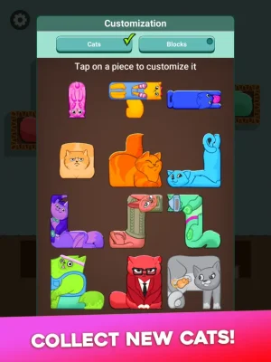 In Puzzle Cats, players can challenge themselves with fun block puzzles that now feature cute cats instead of traditional block pieces. The goal is to make each block fit together on the puzzle board to pass the level. As players progress through the game, they can collect new cats and costumes for their feline friends, adding a fun and playful element to the game.