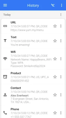 Not only can QR & Barcode Scanner scan and read all types of QR codes and barcodes, including text, URLs, ISBNs, products, contacts, calendars, emails, locations, and Wi-Fi, but it also provides relevant options for each type. This allows users to take appropriate action after the scan and automatic decoding.