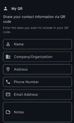 One unique feature of the app is "My QR," which acts as a digital business card. With this feature, you can effortlessly share your contact details by creating a personal QR code with your name, company, phone number, email, and address. This makes networking and exchanging information easier than ever before.