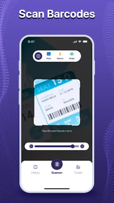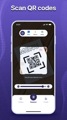 The QR Scanner - Barcode Reader app also has a feature that allows users to scan promotion and coupon codes, making it a useful tool for shopping and saving money. The app is easy to use, with a simple process of installing, opening, and tapping the "Scan" button to start scanning codes. Users can also access their scan history by tapping the "History" button and customize their experience in the "Settings" section.