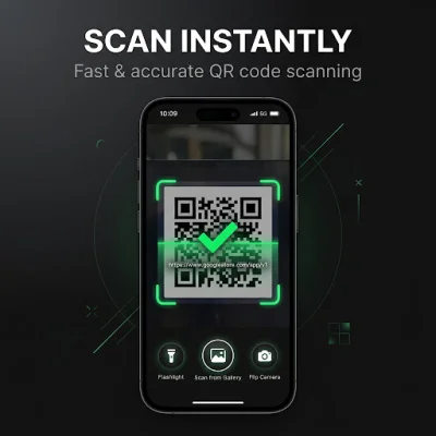 The app features an instant QR and barcode scanner that automatically scans when the camera is pointed at the code, without the need for any button tapping. It also has a built-in flashlight support, making it possible to scan in low light conditions. In case live scanning is not possible, users can import an image from their gallery and scan it.