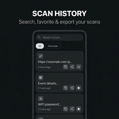 The app keeps a full scan history, making it easy for users to search and access their previous scans. They can also mark their favorite scans and export or backup their history whenever needed. The best part is that all of this can be done without an internet connection, and the app does not collect any data or show ads, ensuring complete privacy for the users.